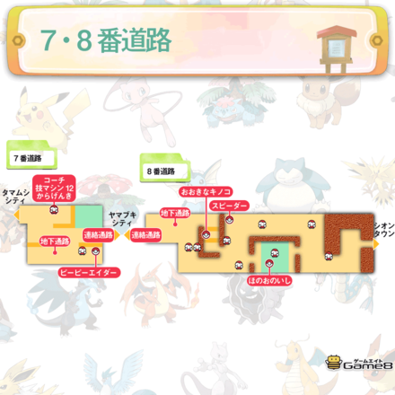 ピカブイ 7 8番道路のマップと出現ポケモン ポケモンレッツゴー ゲームエイト